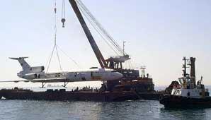 El fuselaje del Tupolev-154 está ahora a 20 metros de profundidad cerca de la costa de la ciudad búlgara de Varna, después de que se hubieran desmontado los motores, muebles y el mando de control de la nave.
