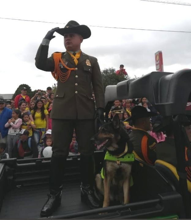 Nuestro can "Sombra" fue la mejor durante los entrenamientos en detección de drogas ilícitas, en los últimos tres años se convirtió en el tormento de "Otoniel" incautandole 9 toneladas de cocaína #ConozcaMás a "Sombra" en el desfile #20DeJulio #COLOMBIAunasolaFuerza pic.twitter.com/a6tWpjkdiQ
