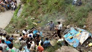 El colectivo se desplomó más de 100 metros al fondo del desfiladero. Cuarenta y seis personas fueron hospitalizadas con heridas, incluyendo tres en condiciones graves, dijo el superintendente policial Kuldip Sharma.