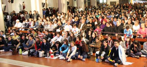Sentados en el suelo, al pie del altar o a los costados de los bancos de madera, los jóvenes fueron los que se animaron al picnic de madrugada. Mientras que las personas mayores también entraron a la Catedral con las canastas repletas de provisiones, pero disfrutaron de los mates desde los bancos. Hubo gente que, además de las provisiones gastronómicas, llevó sillas, banquitos y hasta reposeras para ver cómoda la ceremonia.