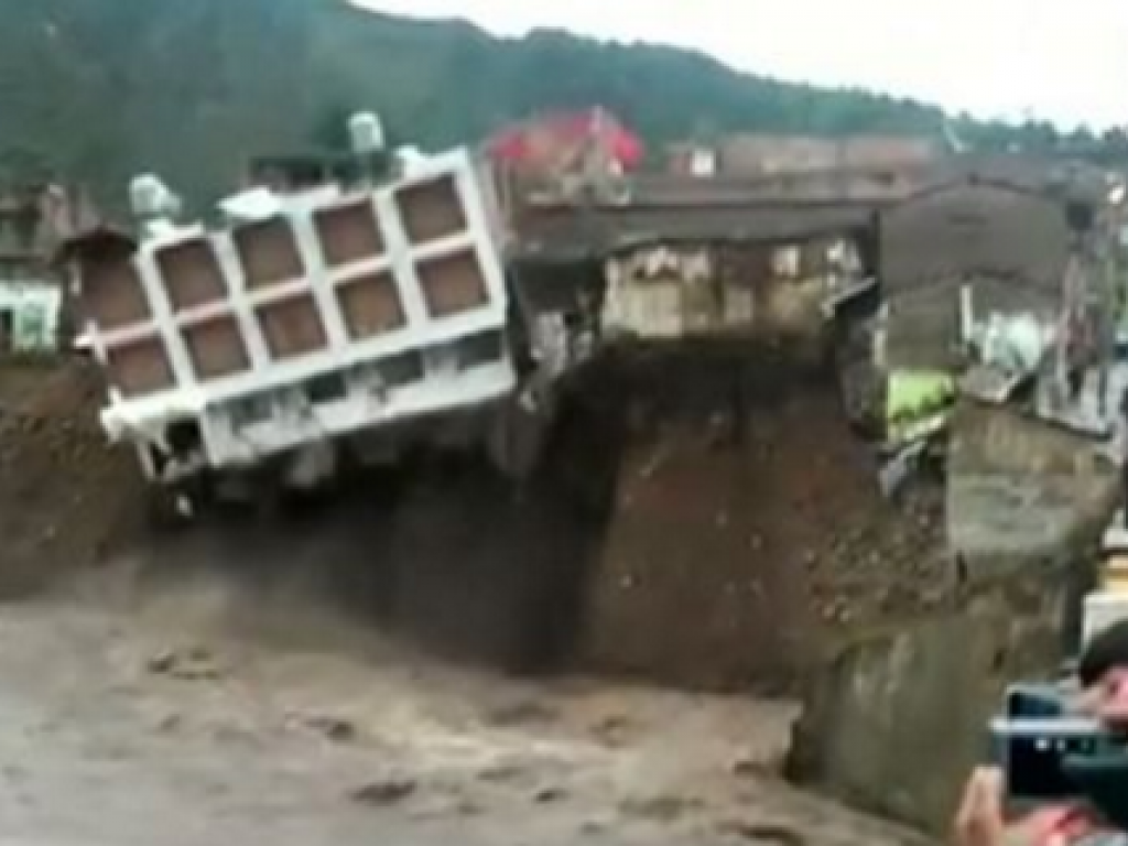 Un canal de televisión captó el momento en que un hotel de tres pisos colapsó y terminó en un río de Perú.