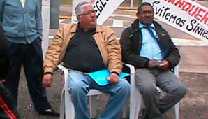 Gómez se encadenó a una silla de plástico junto con un funcionario de su alcaldía y dijo que permanecerá en el ingreso de la ciudad, a la intemperie, hasta que la ruta sea reparada.