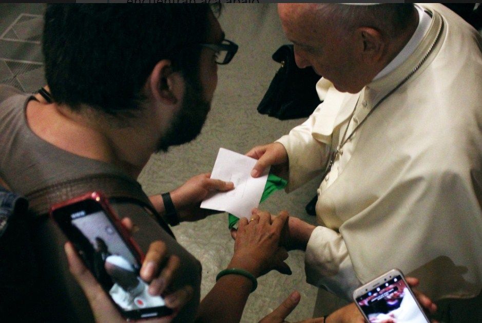 Un joven argentino le entregó un pañuelo verde al papa Francisco