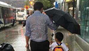 En sólo 20 horas, ya tiene 4 millones de visitas y miles y miles de comentarios y reproducciones. La foto es simple: un padre empapándose en la lluvia para que su hijo pueda permanecer lo más seco posible.
