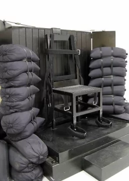 Antes de ser ejecutado, Gardner fue atado a una silla de metal negra, encapuchado y se le colocó un blanco sobre el pecho.