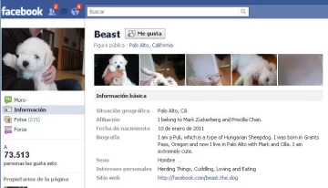 EEUU, 21 de marzo.- El fundador de Facebook, Mark Zuckerberg, ha imitado los pasos de muchos de los usuarios de su red social y ha creado un perfil a su perro ‘Beast’, un simpático cachorro de puli blanco.