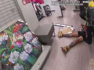 Las imágenes de las cámaras que llevaban los propios policías en su equipo muestran a varios oficiales empuñando sus armas al llegar al lugar. Segundos después de ubicar al sospechoso, uno de los policías dispara. El hombre cae al suelo y es esposado.