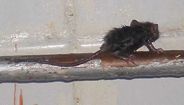 La salsa de color naranja goteaba del roedor que luego escapó a lo largo de una tubería.