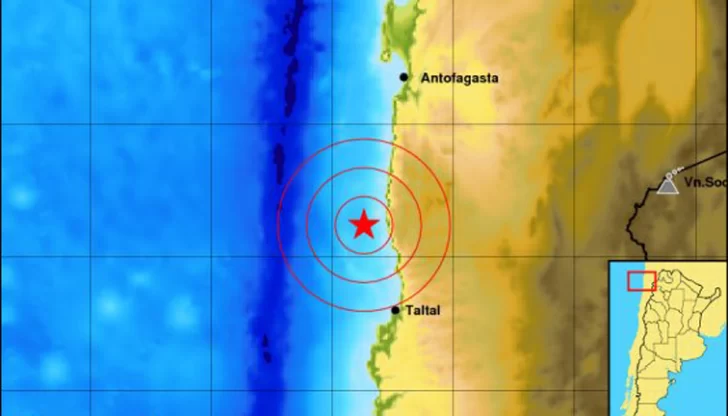 Según el Centro Sismológico Nacional de la Universidad de Chile, el temblor de tierra se sintió a las 18:00 horas (21:00 GMT) y su epicentro se localizó a 70 kilómetros de la localidad de Taltal, y a 1.110 kilómetros al norte de Santiago.