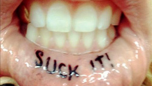 Además, todos sus seguidores han sido testigos de su hazaña, puesto que fotografió cada momento, desde su entrada al centro de tatuajes hasta el artista que le grabó "Suck it" ("Chupa") en el interior de su labio.