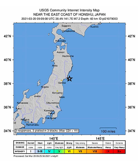 El terremoto alcanzó en Miyagi el nivel 5 superior en la escala nipona, de un máximo de 7 y más centrada en las zonas afectadas que en la intensidad del temblor.