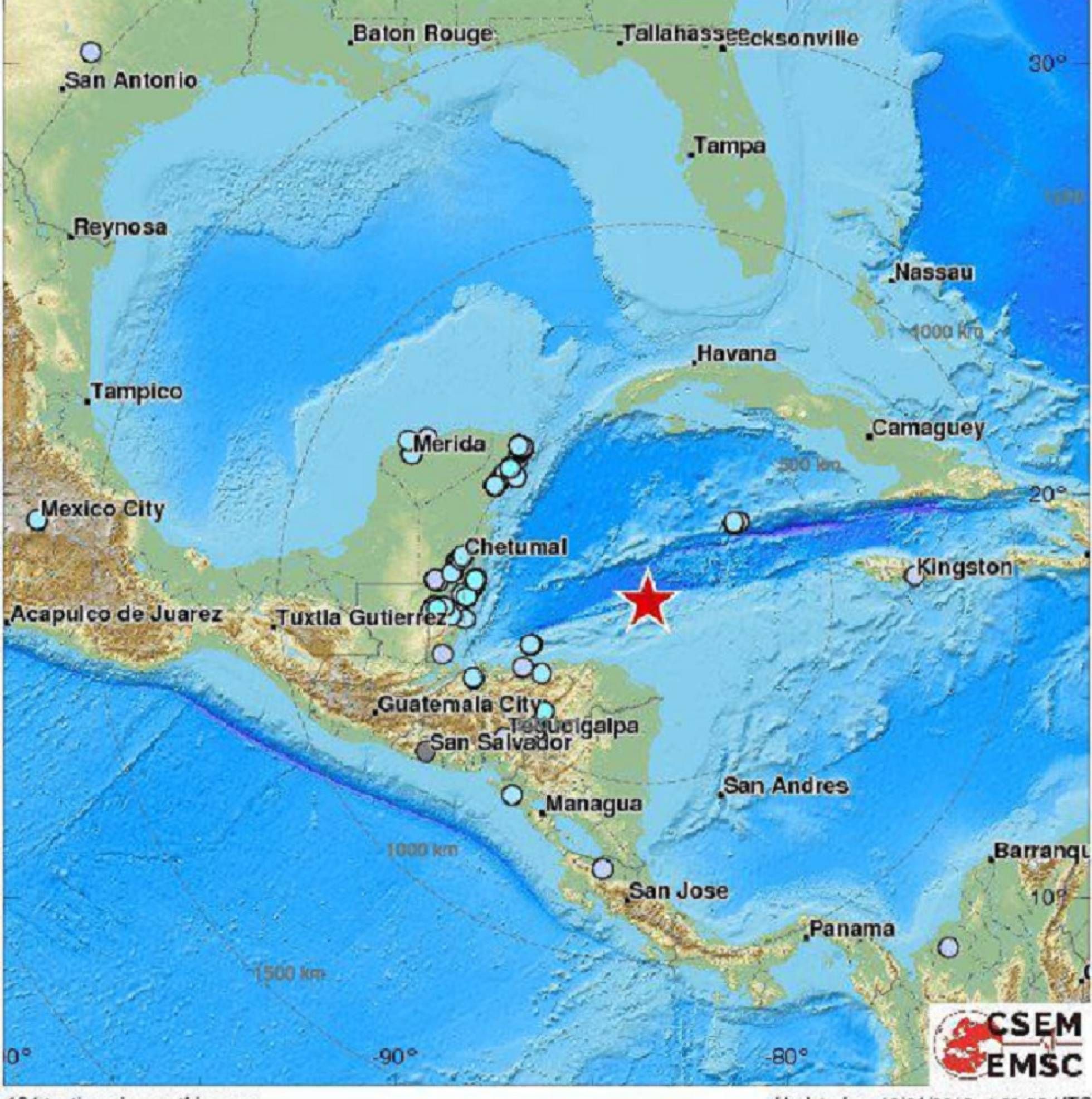 El temblor, que se inició en el mar a 44 kilómetros de la isla hondureña de Gran Cisne y a 10 kilómetros de profundidad, hizo que el Centro de Alertas de Tsunami del Pacífico lanzase el aviso por riesgo de maremoto en la región, que desactivó dos horas después.