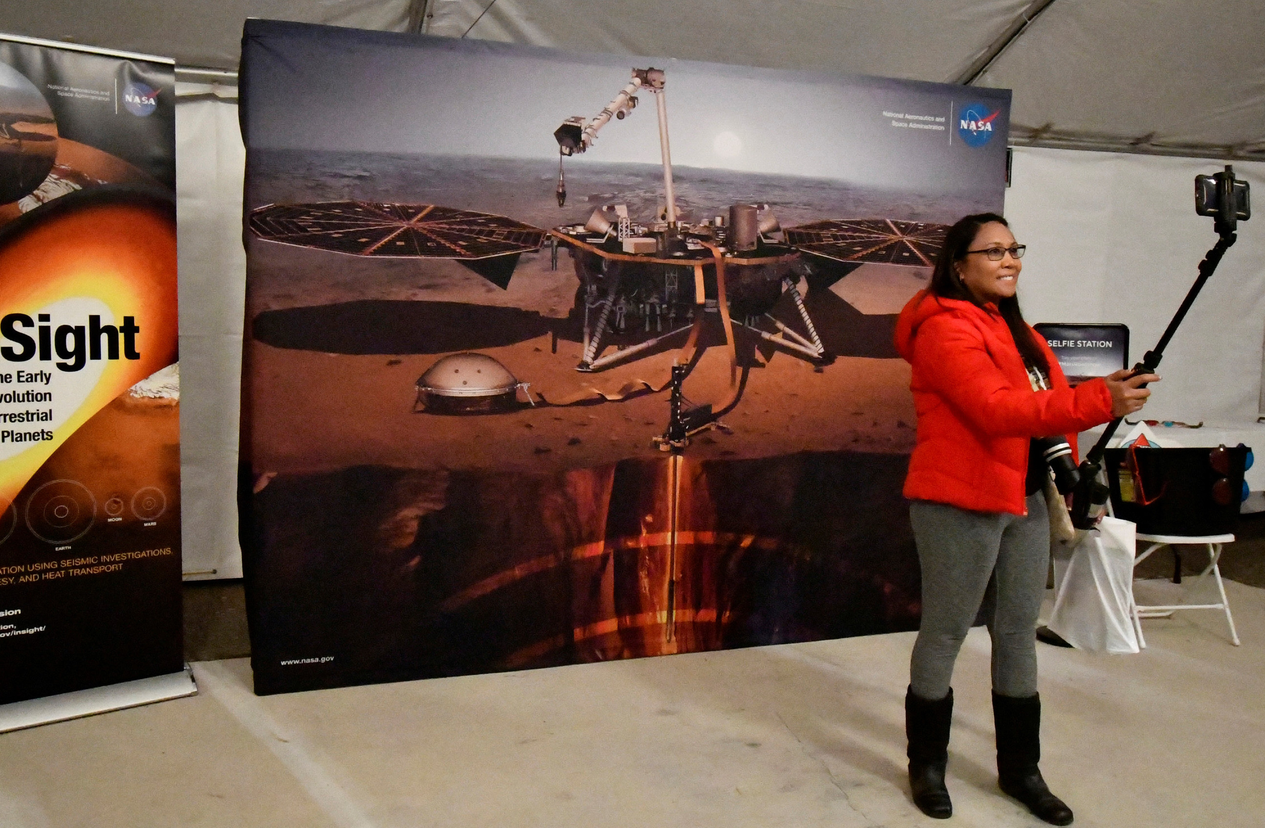Lanzamiento. Una visitante se saca fotos en un visualizador de la NASA, antes del lanzamiento de la histórica misión.