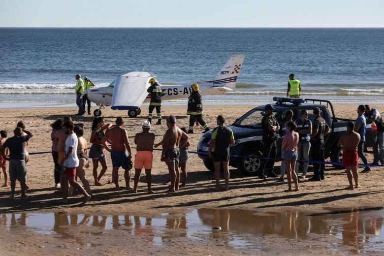 Cientos de personas estaban disfrutando de la playa de Caparica, a 30 kilómetros al sur de Lisboa, y algunos huyeron despavoridos al mar al ver la avioneta descendiendo. La aeronave, que llevaba dos personas a bordo parecía haber sufrido alguna avería y se tambaleaba al pasar al ras de la multitud atemorizada, según testigos.