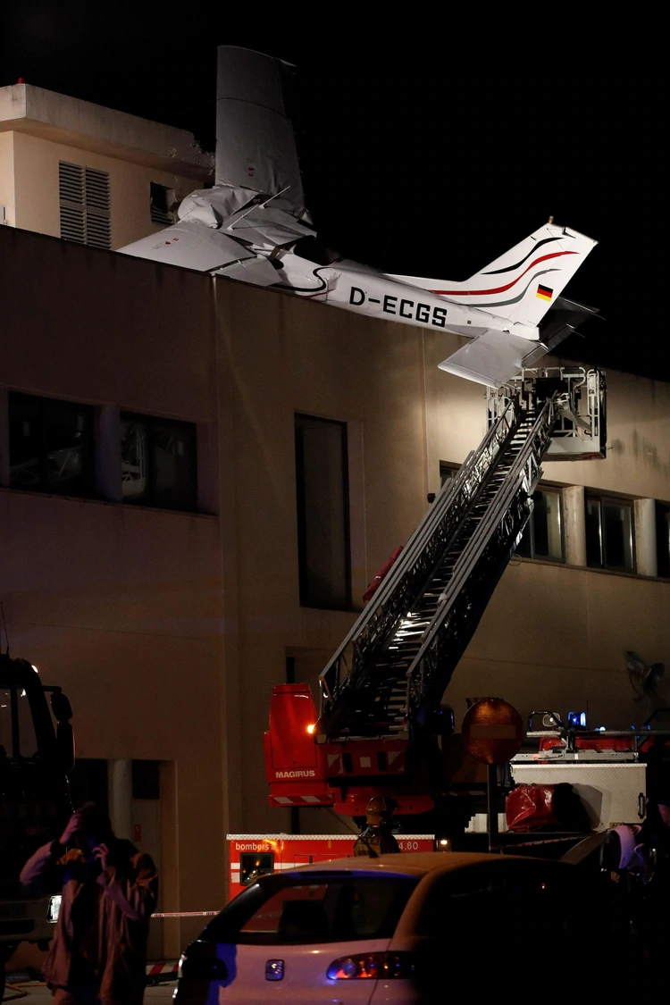 La avioneta se incrustó en el techo del edificio, pero no causó daños en la estructura ni tampoco una explosión del combustible de las instalaciones, y fue preciso movilizar a una grúa para extraer el aparato debido a la inestabilidad que presentaba.