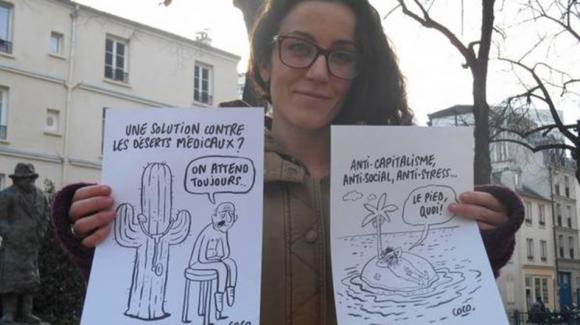 Corinne Rey es una diseñadora independiente, especializada en dibujos de prensa y humor, que desde el año 2009 trabaja como caricaturista en la revista Charlie Hebdo. Además, colabora y ha trabajado en otras publicaciones francesas como la revista ‘Los Inrockuptibles‘ y ‘Echo des Savanes‘. Sobre su labor en la redacción de la revista, la diseñadora detalla: ‘Mi trabajo consiste en responder al dibujo actual, para ilustrar los artículos de noticias, caricatura, crear cómics‘.