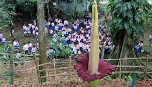 La planta, que surgió de una semilla donada en 2006, ha crecido un promedio de unos 20 centímetros diarios en las últimas semanas. La bunga bangkai es originaria de las selvas tropicales de Sumatra, en Indonesia, y está en peligro debido a la deforestación de los bosques en donde crece.