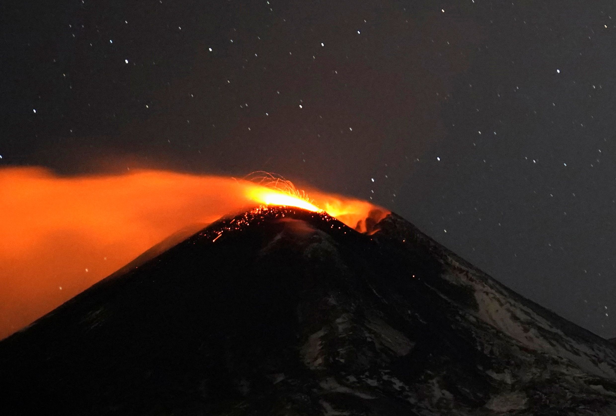 La erupción del cráter sureste del volcán, con una fuerte actividad explosiva y coladas de lava, comenzó a las 16.00 hora local (15.00 GMT) y provocó una lluvia de ceniza y piedras de hasta un centímetro de diámetro en la provincia.