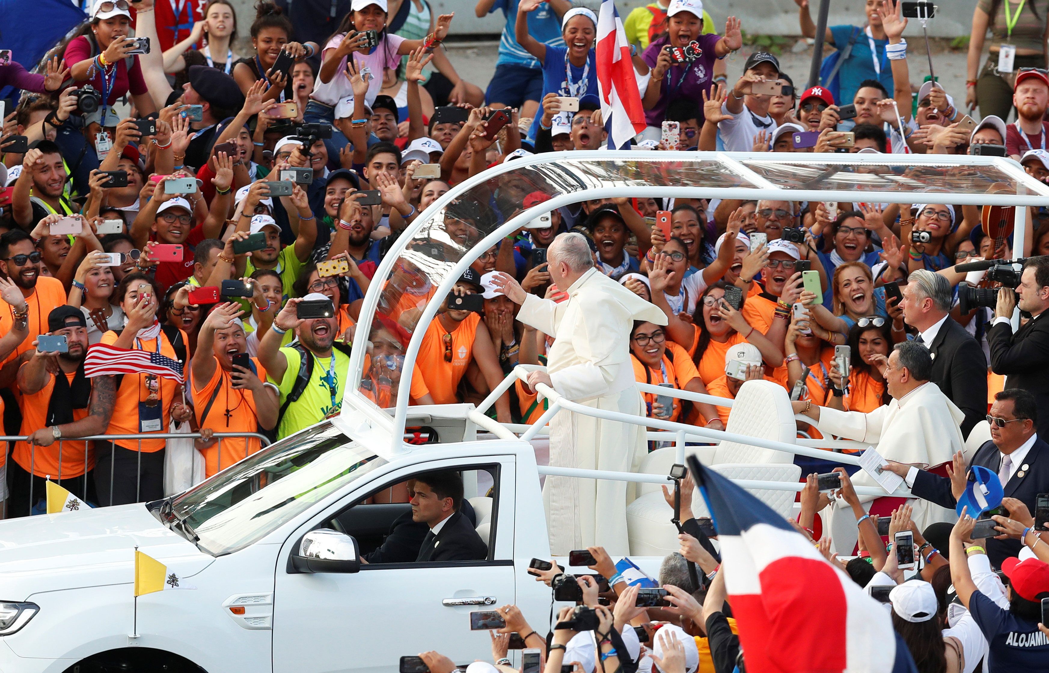 Miles de jóvenes ondeando las banderas de sus países oyeron, embelesados, al Sumo Pontífice. Unos sostuvieron banderas de Venezuela con la inscripción de "libertad" y otros posaron con el pendón de Nicaragua de cabeza, en señal de protesta contra el gobierno de Daniel Ortega.