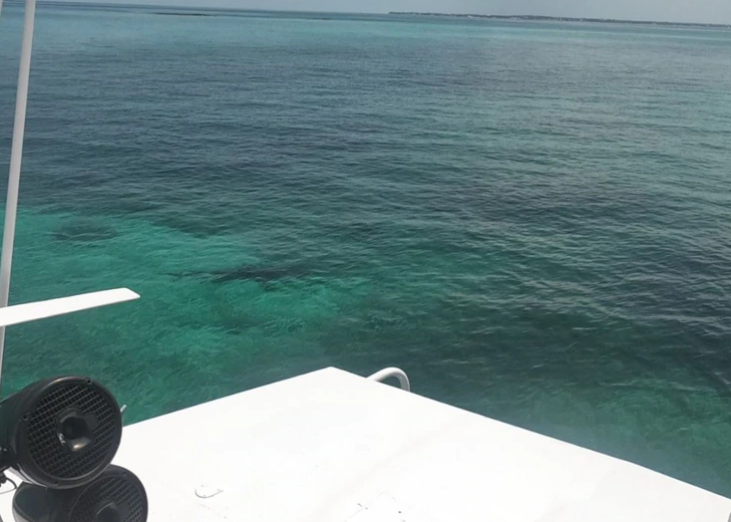 Agregó: "Cuando regresábamos al bote, había dos pequeños tiburones aún en el agua y un gran tiburón que todavía estaba en el agua, cuya foto le envié a mi hermano".