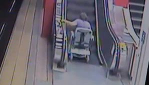 En el video se ve a la mujer de 56 años abordando con mucha seguridad la escalera mecánica con su silla de ruedas eléctrica. Incluso se agarra de la baranda.