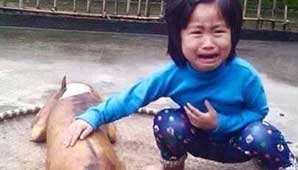 Vietnam, 31 de marzo.- La imagen es conmovedora. Una nena llora desconsoladamente ante el cadáver de su mascota, cocinada, exhibida en una bandeja, lista para ser servida.