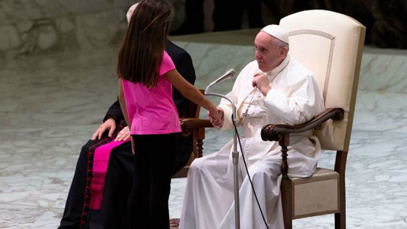 La escena continuó durante toda la audiencia, y el Papa miraba a intervalos a la nena, de la que había señalado que tenía problemas de salud y eso motivaba que no tuviera conciencia de sus actos. Recién al final del mensaje del Pontífice, las personas que se encontraban a cargo del grupo en el que se encontraba la pequeña pudieron conseguir que bajara del escenario.