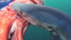 Lejos de desistir, el tiburón prestó resistencia y logró llevarse de un mordisco gran parte de los tentáculos del calamar, que luego fue subido a la lancha pesquera. Según los especialistas que analizaron la presa, el animal habría muerto tras un duelo con su predador natural, el cachalote, que puede llegar a bajar hasta 3 kilómetros sólo para encontrarlo.