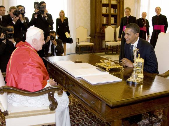 Obama y el Papa sostuvieron conversaciones privadas por alrededor de 40 minutos en el estudio del Papa en un histórico encuentro en el palacio apostólico del Vaticano.
