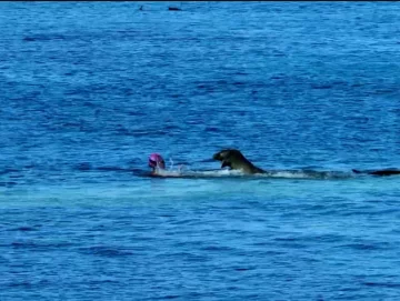 Mientras la mujer nadaba, el cachorro se acercó a ella, lo que provocó que los instintos protectores maternales de Rocky se activaran, atacando a la mujer.