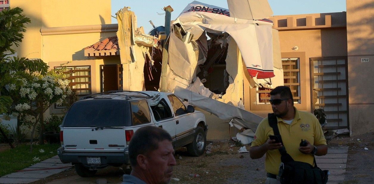 La avioneta, de la aerolínea Aerocalafia, causó severos daños estructurales en la casa de una zona residencial del norte de Culiacán, señaló a la prensa el titular de Seguridad Pública y Tránsito Municipal, Óscar Guinto Marmolejo.