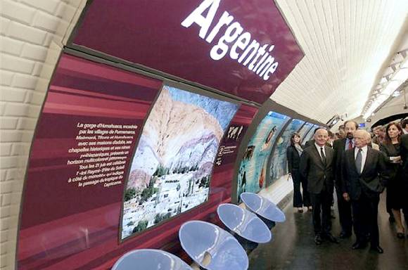 El ministro de Turismo de Argentina, Enrique Meyer, el embajador de ese país en Francia, Aldo Ferrer, y el presidente de RATP, Pierre Mongin, fueron los encargados de inaugurar la estación ubicada en los tradicionales Campos Eliseos, una de las zonas turísticas más destacadas del mundo. En la estación de la línea 1 del subte de París también pueden observarse ahora referencias al gaucho, a la gastronomía nacional y a los grandes inventos argentinos.