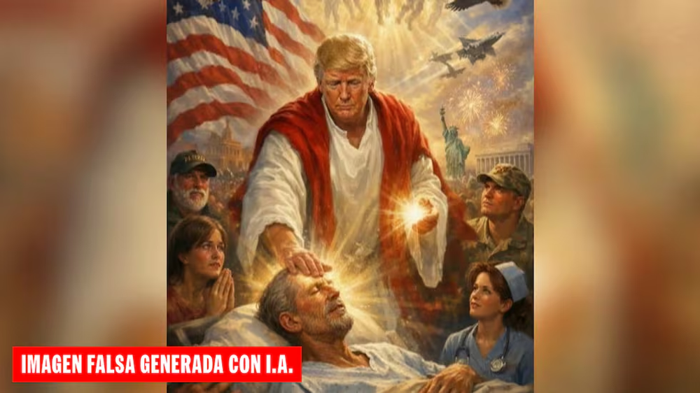 La imagen, publicada en Truth Social, mostraba a Trump con una bata y la mano sobre la frente de un hombre postrado en cama. Una luz rodeaba la cabeza del hombre, y una esfera luminosa flotaba en la otra mano del presidente. Una bandera estadounidense y la Estatua de la Libertad adornaban el fondo.
