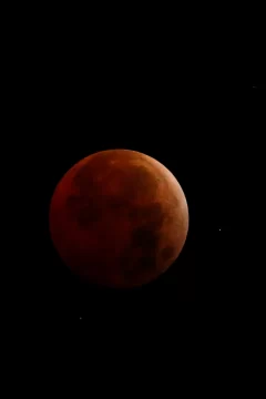 La fase máxima del eclipse lunar es conocida como ‘luna de sangre’ debido al color que adquiere la cara visible del satélite.