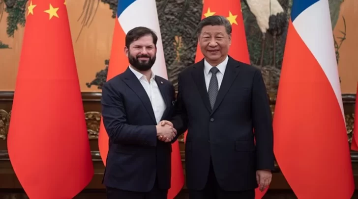 El presidente de Chile, Gabriel Boric y el presidente de China, Xi Jinping, en mayo de 2025. En el encuentro abordaron diversas materias de cooperación estratégica, como cultura, ciencia antártica, transición energética, comercio y desarrollo sostenible.