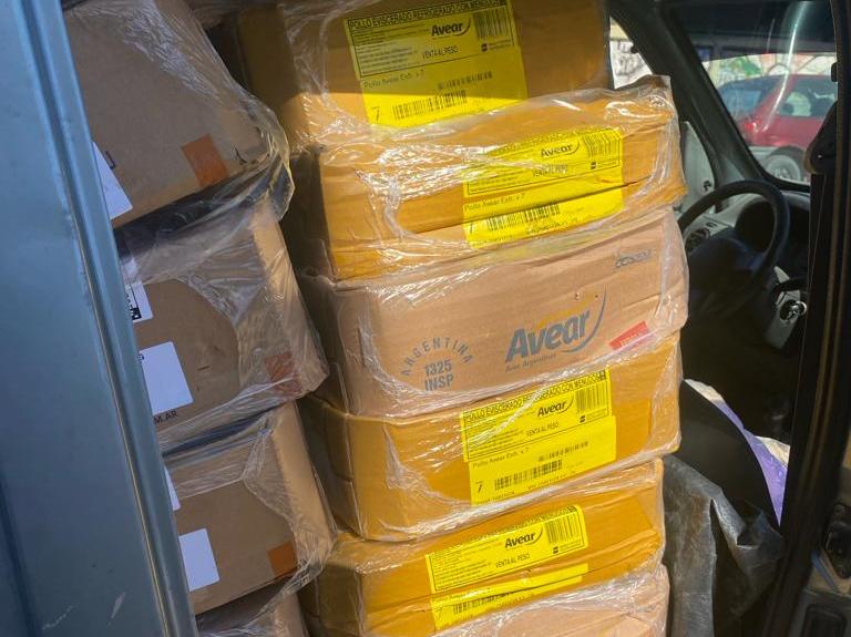 En el interior había una importante cantidad de cajas de pollo, bolsas de supremas y carne molida vacuna. El propietario de la unidad dijo que trasladaba la mercadería desde una avícola de Rawson, ubicada en las inmediaciones de calle Progreso y Ruta 40, hasta Sarmiento.