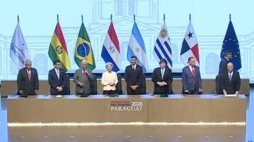 La rúbrica del acuerdo de libre comercio entre el Mercosur y la UE se realiza en el Gran Teatro “José Asunción Flores” del Banco Central de Paraguay. Ahí están presentes el presidente Javier Milei junto a sus pares Rodrigo Paz (Bolivia), Yamandú Orsi (Uruguay) y Santiago Peña (Paraguay), quien oficia de anfitrión por ser el presidente pro tempore del Mercosur.