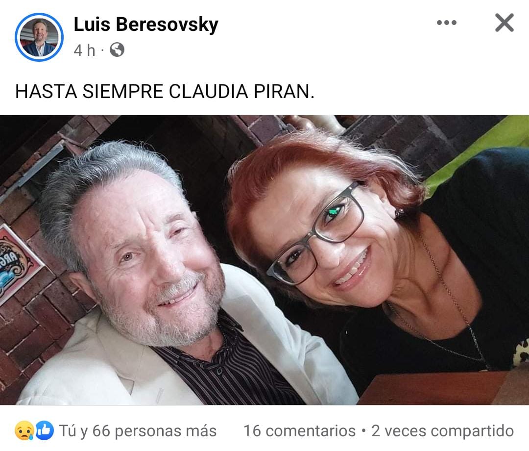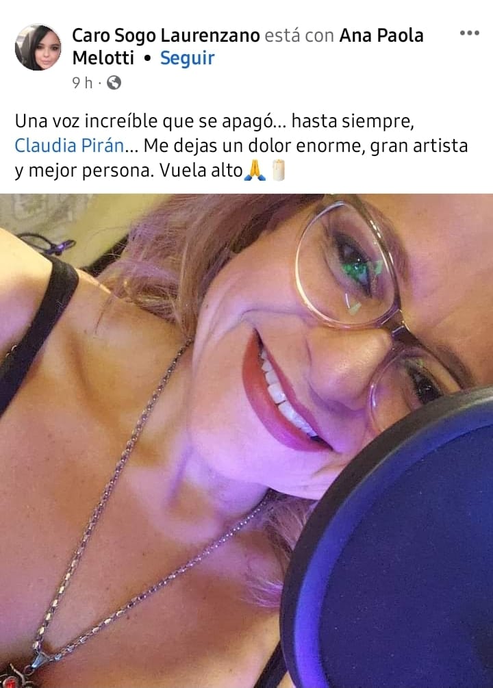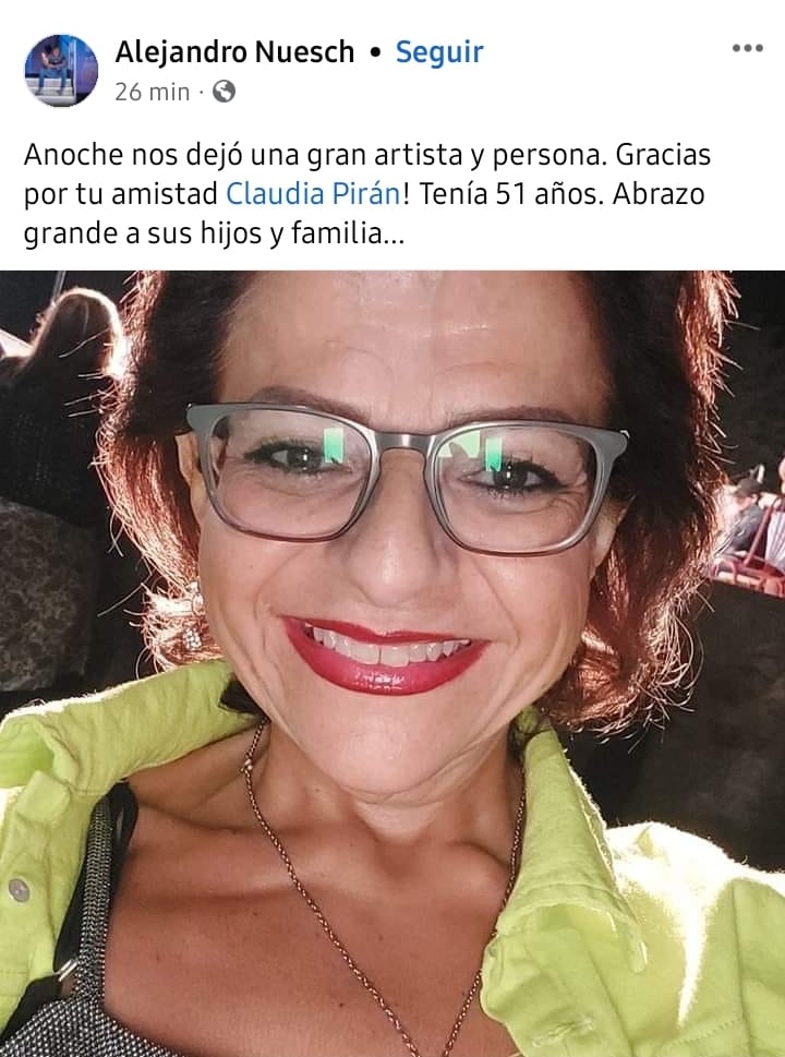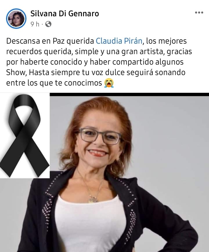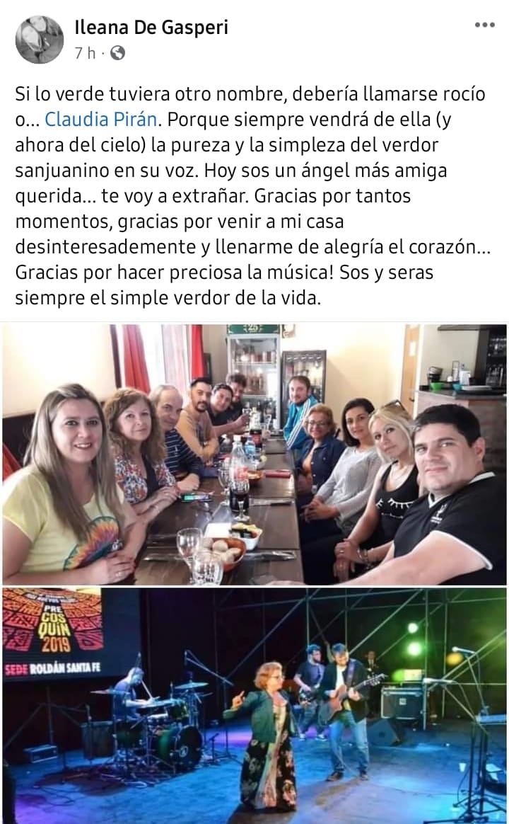 La noticia del fallecimiento de Claudia Pirán a los 51 años causó conmoción en la sociedad sanjuanina , pero sobre todo en el mundo de la música.