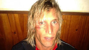 El jugador de la Gloria recibió un golpe de puño en la cara que le terminó produciendo una herida cortante bajo el ojo izquierdo.