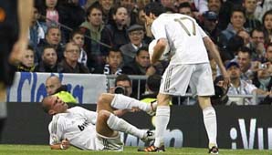 Ahora Pepe también le pega a sus compañeros. El defensor de Real Madrid le tiró una patada a Arbeloa, quien fue a auxiliarlo, pensando que era Piatti.