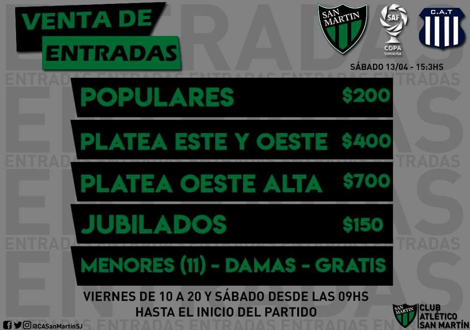Con el descenso consumado, este sábado comienza un premio consuelo para San Martín: la Copa de la Superliga. El Verdinegro se enfrentará desde las 15:30 con Talleres de Córdoba en el Estadio Hilario Sánchez.