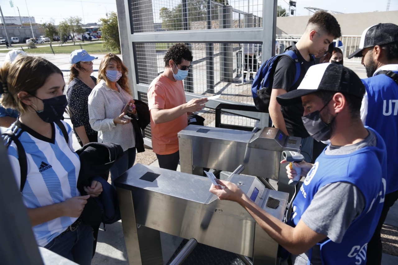 Los primeros en pisar las tribunas del gigante de Pocito buscaron hacerse con las mejores ubicaciones, es decir, al centro de las plateas o populares. Todo en orden, con los controles de rigor en los ingresos para que no entre nadie que no deba, respetando las recomendaciones de la organización.