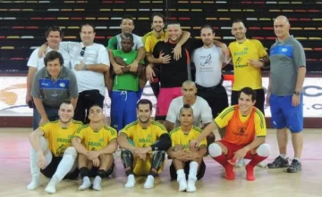 El actual técnico de Sarmiento de Albardón dirige a Brasil (en la foto, hincado, primero de izquierda a derecha), justo el rival de hoy de la Argentina. Está contento con sus dirigidos, reconoce el potencial argentino pero aclara que saldrá a ganarle.