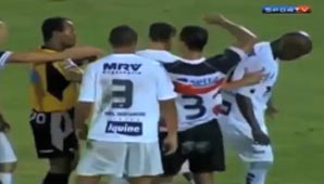 Buenos Aires, 10 de mayo.- El defensor Tobi, del Sport Recife, encontró una forma original de protestar ante el árbitro por una amonestación que le pareció injusta.