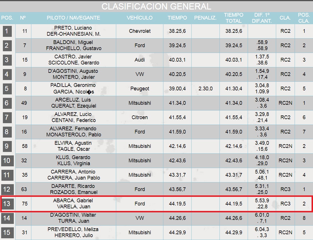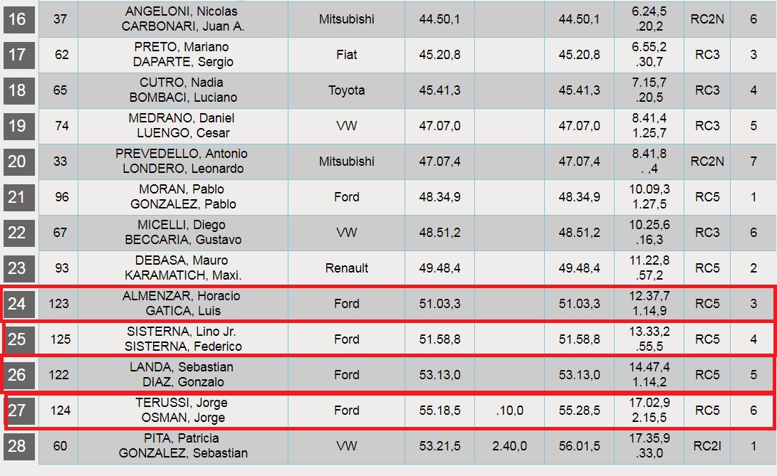 Ya disputadas las primeras seis Pruebas Especiales del día, así quedaron los competidores sanjuaninos (marcados con rojo) en la tabla general:
