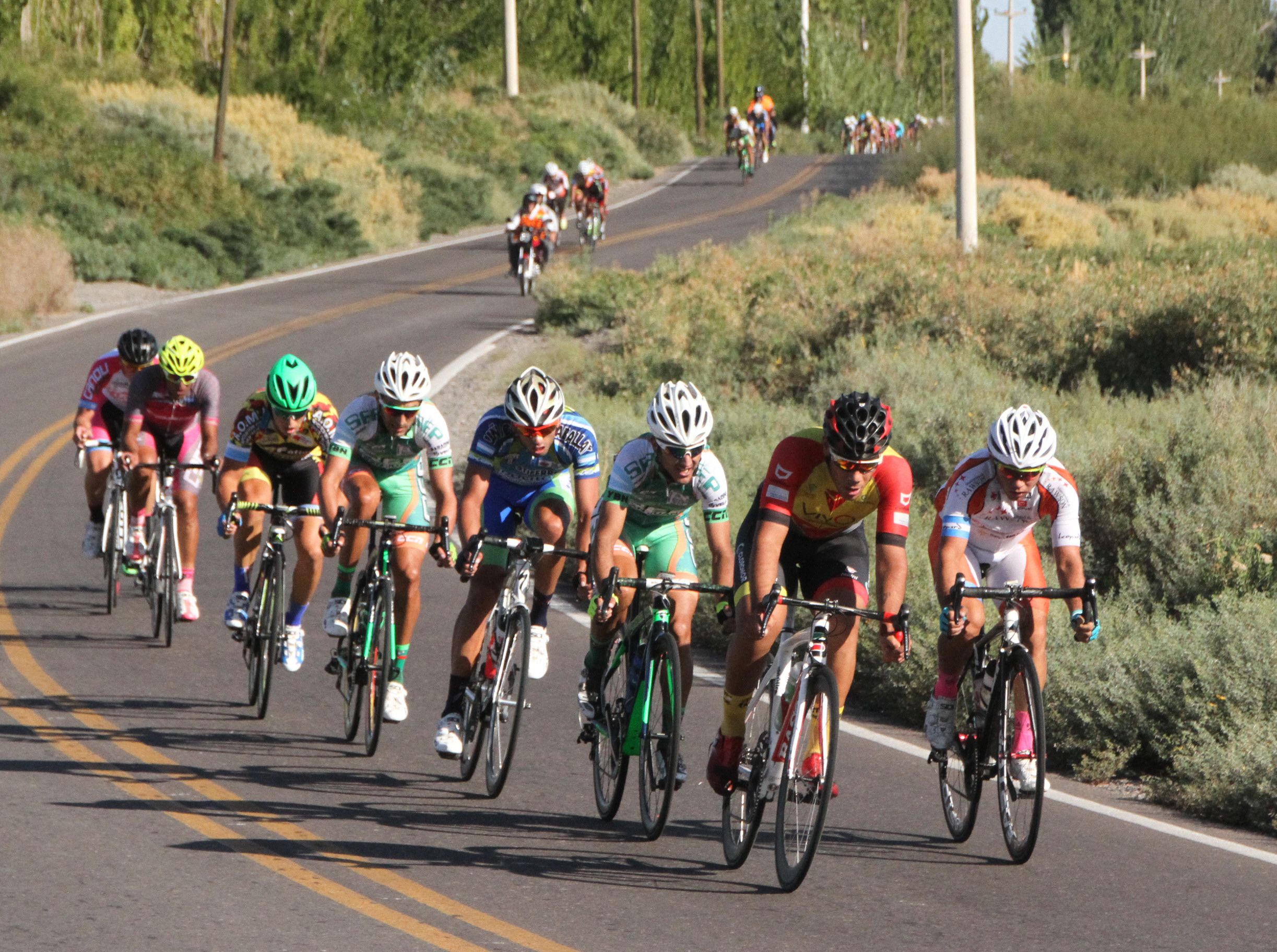 En una zona de curva y contracurva, en el Bajo Segura, se corta el pelotón. Un grupo de ciclistas se rebeló y salió a achicar el minuto de distancia que les llevaban los líderes. Sólo cuatro, de esos ocho hombres, lograron el objetivo de llegar arriba.
