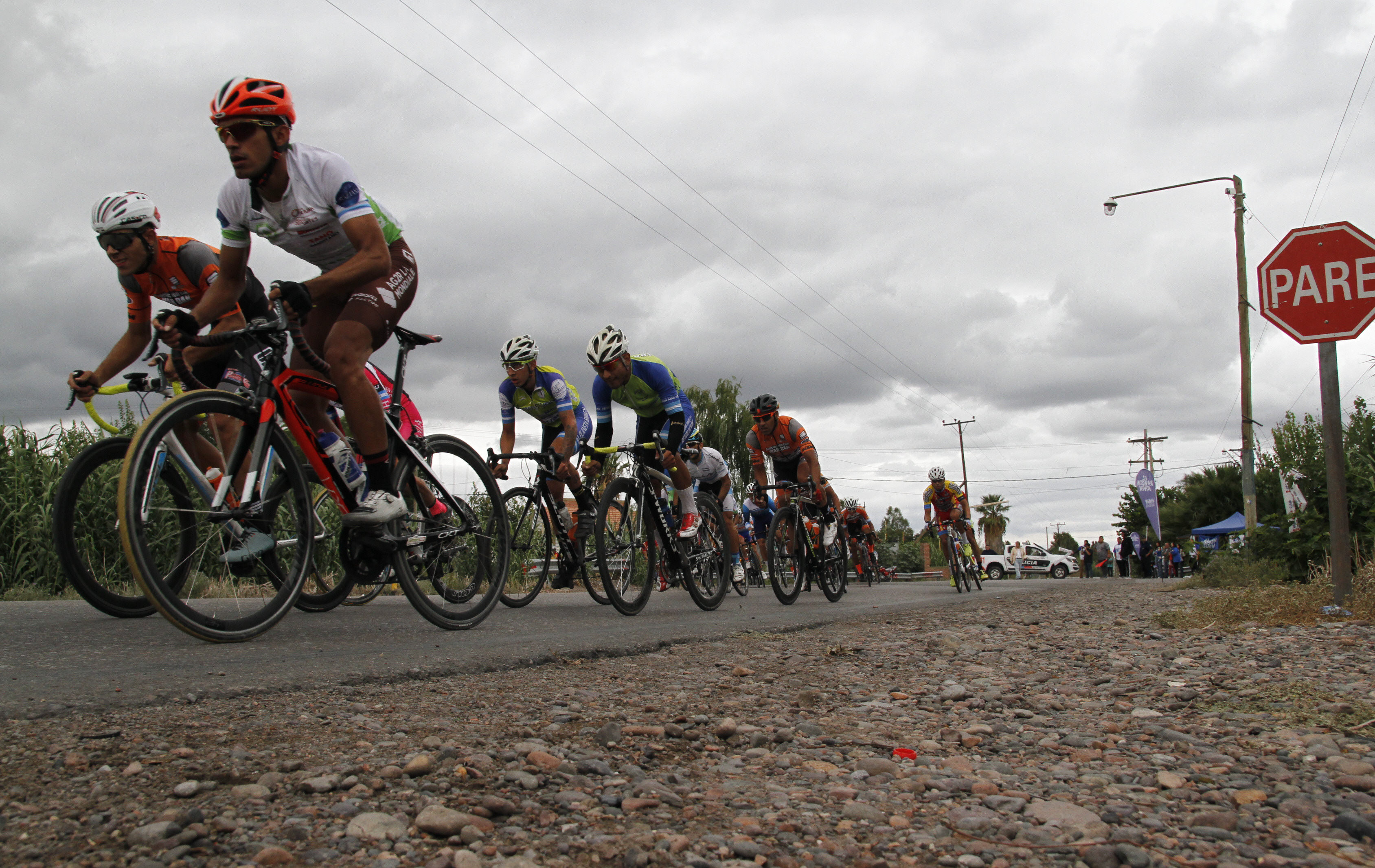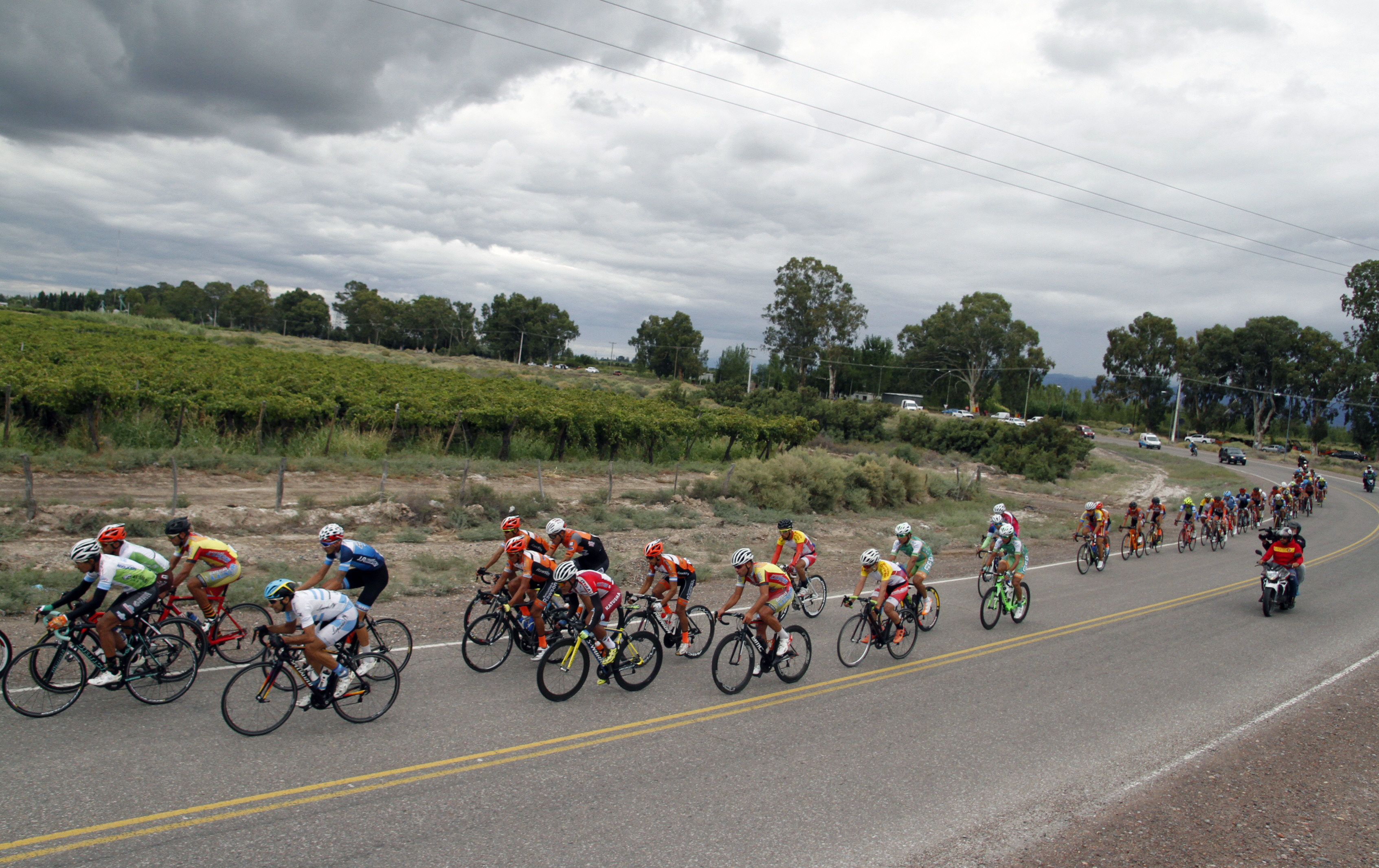 En el segundo grupo se viajaba sin orden. Darío Díaz y Nicolás Tivani vienen en el medio. Ellos dos, junto a Naranjo, estuvieron entre la decena de ciclistas que llegaron arriba. Se trabajó a destajo y el viento les pasó factura.