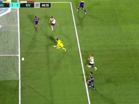 A los 44′ del ST, casi la mete en contra Izquierdoz: la pelota entraba pero cambió de rumbo en la línea. Y luego dio en el palo. Gallardo lo gritaba…
