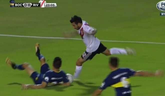 La primera polémica de la noche en Mar del Plata se dio a los 23 minutos: Scocco encaraba hacia el arco, cuando Goltz se tiró al piso para taparlo y la pelota le dio en el brazo derecho. Enseguida, el de River reclamó penal, pero el árbitro Facundo Tello entendió que no había infracción.
