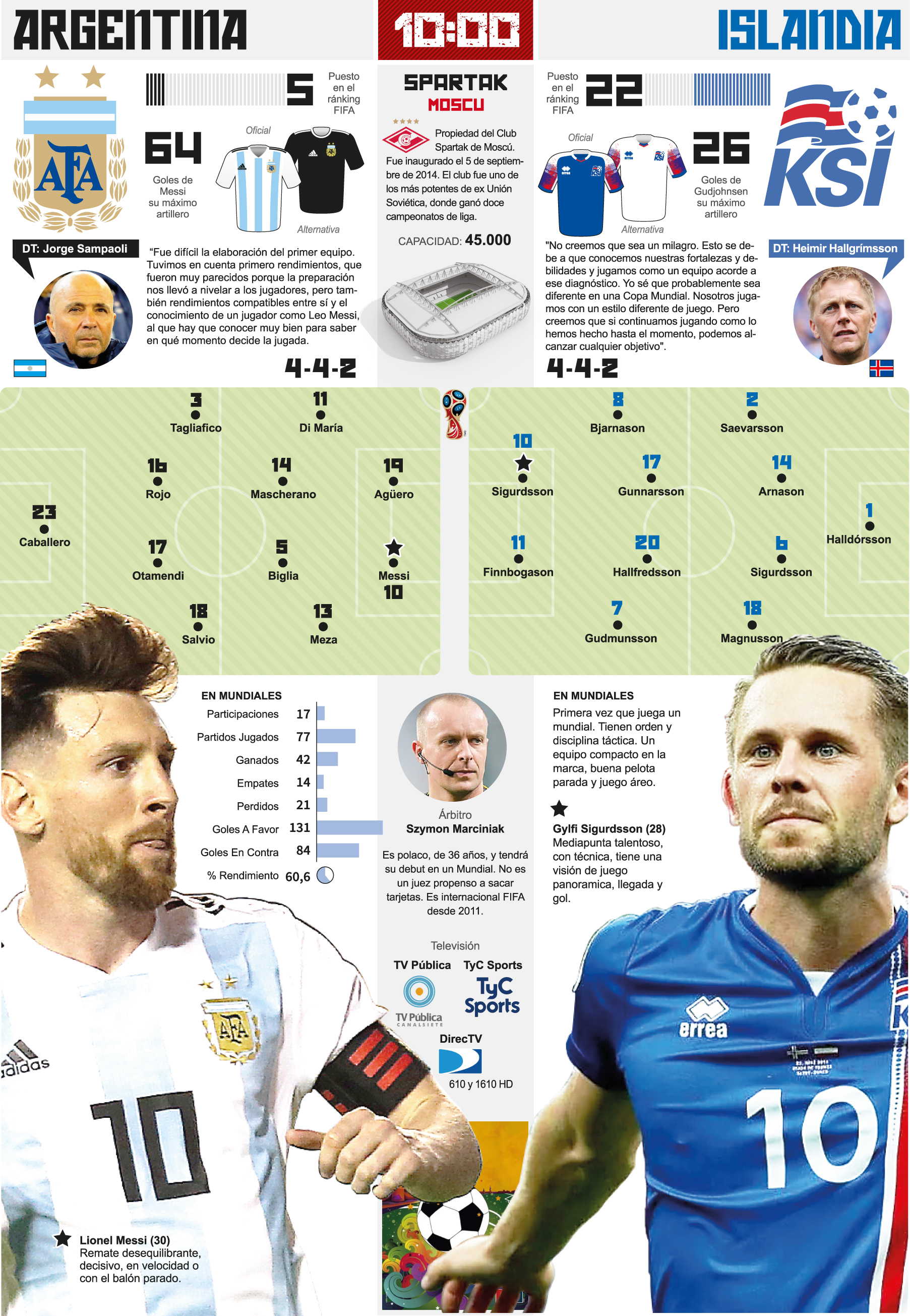 [ Infografía] Conocé la probable formación de Argentina e Islandia